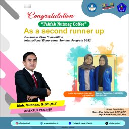 [vc_row][vc_column][vc_gallery interval=”3″ images=”138010″][/vc_column][/vc_row][vc_row][vc_column][vc_column_text]Congratulations. Selamat atas prestasi yang membanggakan dari mahasiswa Politeknik Negeri Fakfak atas nama Anita Rahmawati (Agroindustri) 16420011 Jasmin Rahmadhan (Agroindustri) 16420019 sebagai Juara Harapan 2 dalam Bussiness Plan Competition International Edupreuner Summer Program 2022 yang diselenggarakan oleh Politeknik Negeri Bali dengan judul Proposal “Fakfak Nutmeg Coffee”. Semoga ke depannya semakin banyak prestasi yang […]