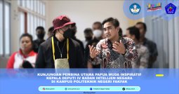 [vc_row][vc_column][vc_column_text] Jumat 23 September 2023 bertempat digedung ketahanan pala Politeknik Negeri Fakfak, Polinef mendapat kunjungan dari Deputi IV Badan Intelijen Negara (BIN) dibidang Pengembangan UMKM Bapak Mayjen Dr.Ir. Gede Made Kartikajaya, SE.,M.M.,M.A.P. didampingi Beberapa teman2 dari Papua Muda Inspiratif (PMI) Pusat Mbak Mei, Bapak Simon Tabuni perwakilan (PMI) dari provinsi papua barat,Bapak Abdul Wahab Iha, […]