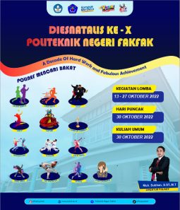 [vc_row][vc_column][vc_column_text]Halo Sobat Polinef ! Dalam rangka menyemarakkan kegiatan puncak Dies Natalis X Politeknik Negeri Fakfak dengan tema “A decade of hard work and fabulous achievement”, ada beberapa perlombaan bagi mahasiswa dan dosen yang dapat diikuti. 1. Volly (Pak Osmar 085255433033) 2. Solo Song dan Stand Up Comedy (Bu Zharin) https://forms.gle/8H6G3yV3NFKhBTkz5 atau https://m5.gs/aUJVMz 3. Bela Diri […]