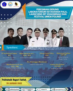 FAKFAK – Politeknik Negeri FakFak atau yang lebih dikenal dengan Polinef, secara berkelanjutan melakukan aktivitas yang bertujuan meningkatkan serta mengembangkan kualitas kampus, yang diharapkan akan berdampak positif baik untuk kalangan internal dan Provinsi Papua Barat. Satu pekan ke depan nanti, tepatnya mulai tanggal 17 – 22 Januari 2022, Polinef akan melakukan serangkaian acara yang dihadiri secara […]