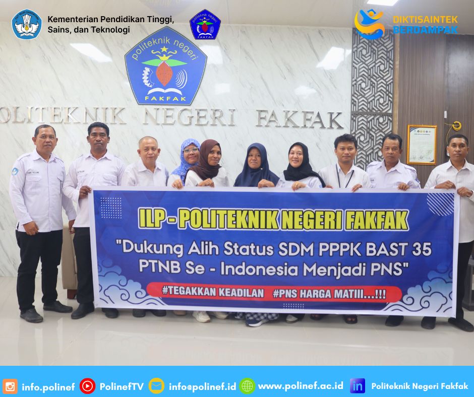 Dalam kesempatan ini Direktur Polinef turut mendukung aksi ini, agar para PPPK beralih ke PNS,”Saya mendukung peralihan PPPK menjadi PNS, sehingga para dosen dan tendik di Polinef dapat memperoleh hak dan kesempatan yang sama untuk berkembang maju baik dalam bidang karir maupun akademik seperti halnya PNS”.