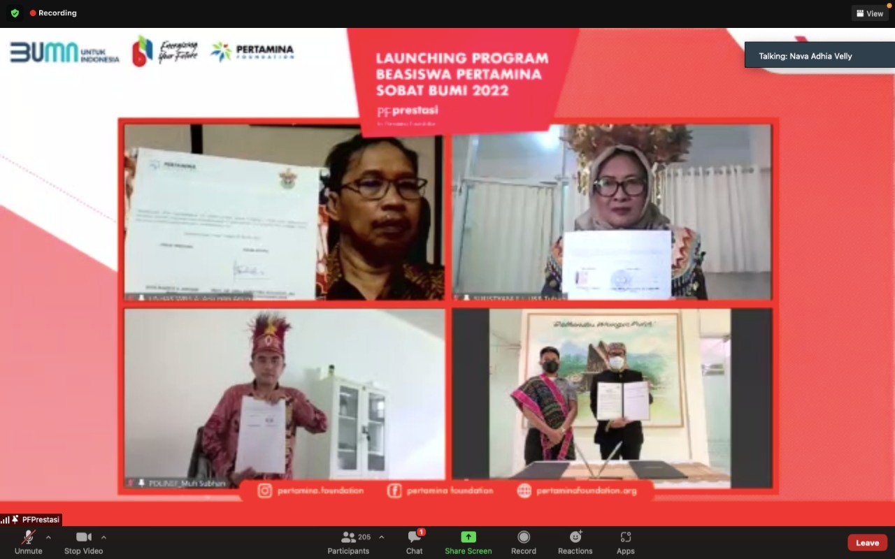 Penandatanganan Nota Kesepahaman diwakili oleh Bapak Agus Mashud S. Asngari (Presiden Direktur Pertamina Foundation), Bapak Prof Dr. drg. A. Arsunan Arsin, M.Kes. (Wakil Rektor bidang Kemahasiswaan dan Alumni Universitas Hasanuddin), Ibu Dr. Sulistyani Eka Lestari, S.H., M.H (Wakil Rektor I Universitas Sunan Bonang Tuban), dan Bapak Muhammad Subhan, S.ST., M.T (Direktur Politeknik Negeri Fakfak).
