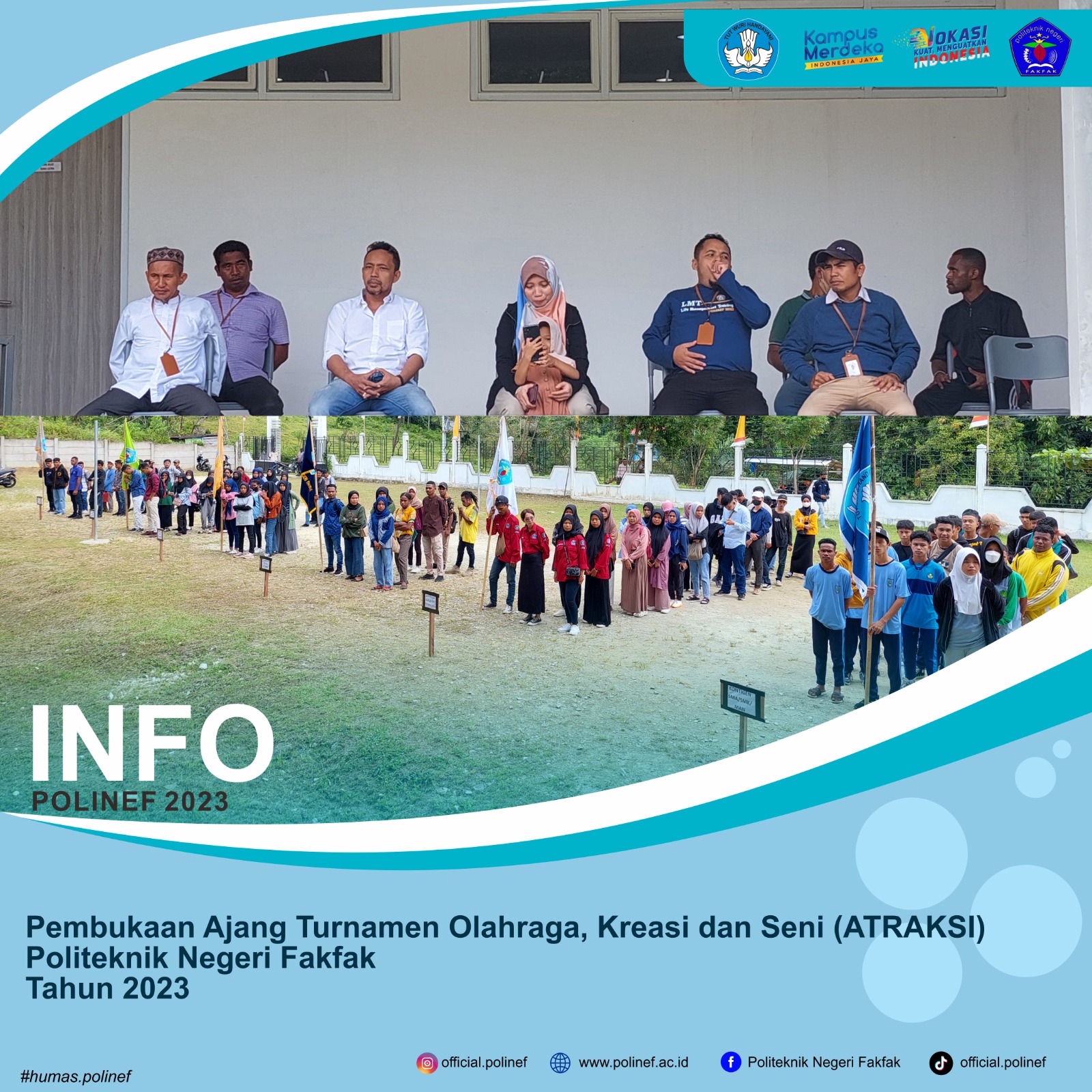 Porseni Ajang Turnamen Olahraga, Kreasi, dan Seni (ATRAKSI) Politeknik Negeri Fakfak Tahun 2023 Telah Dibuka Read More 23 February 2023